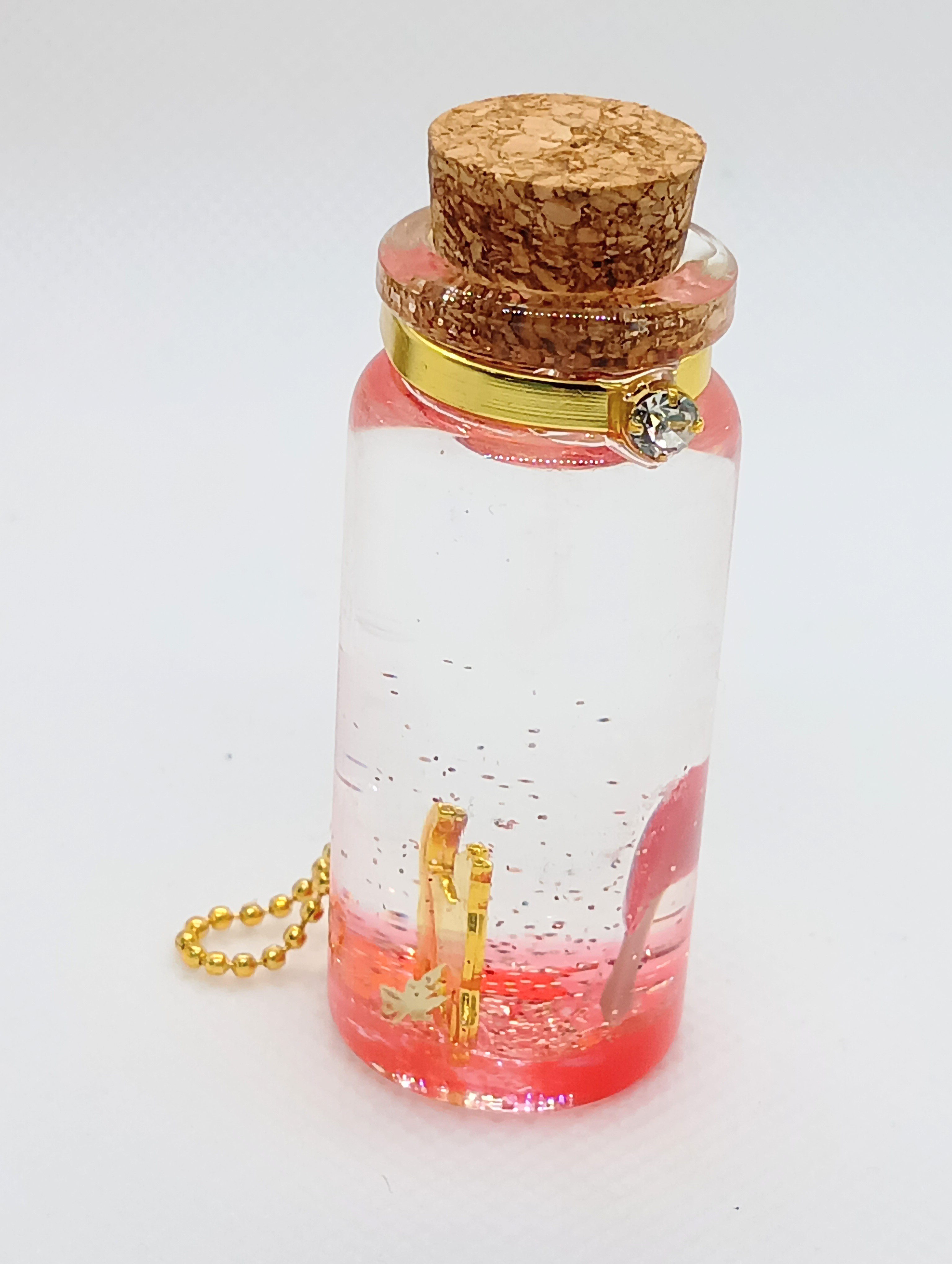 ガラスの瓶のため割れにくいものを選んでおりますが、もし何かの衝撃で割れてしまった際は破片に十分ご注意ください。中の液はベビーオイルのため触れてもアレルギーの心配は少ないものとなります