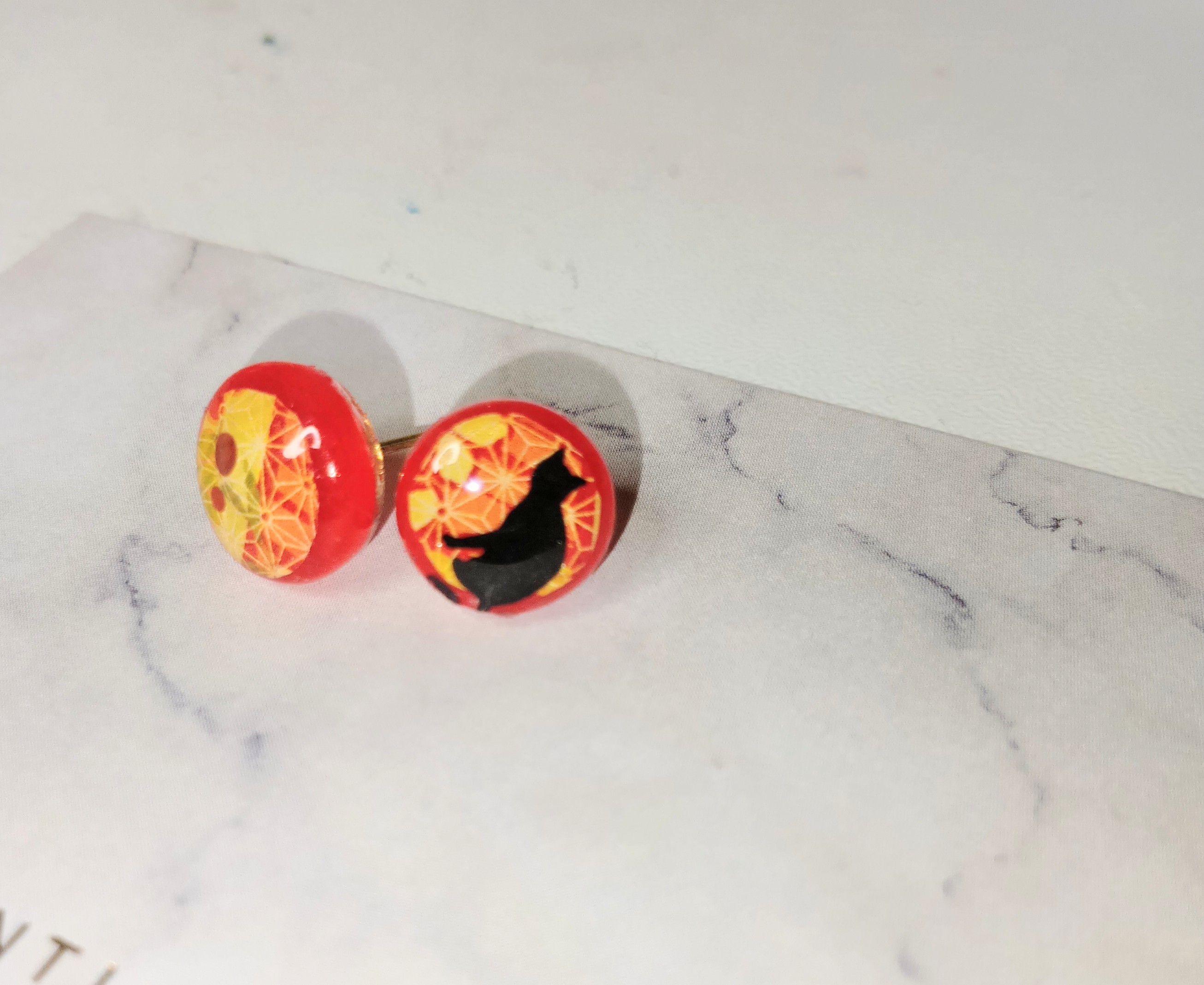 黒猫と和柄のピアス・イヤリング