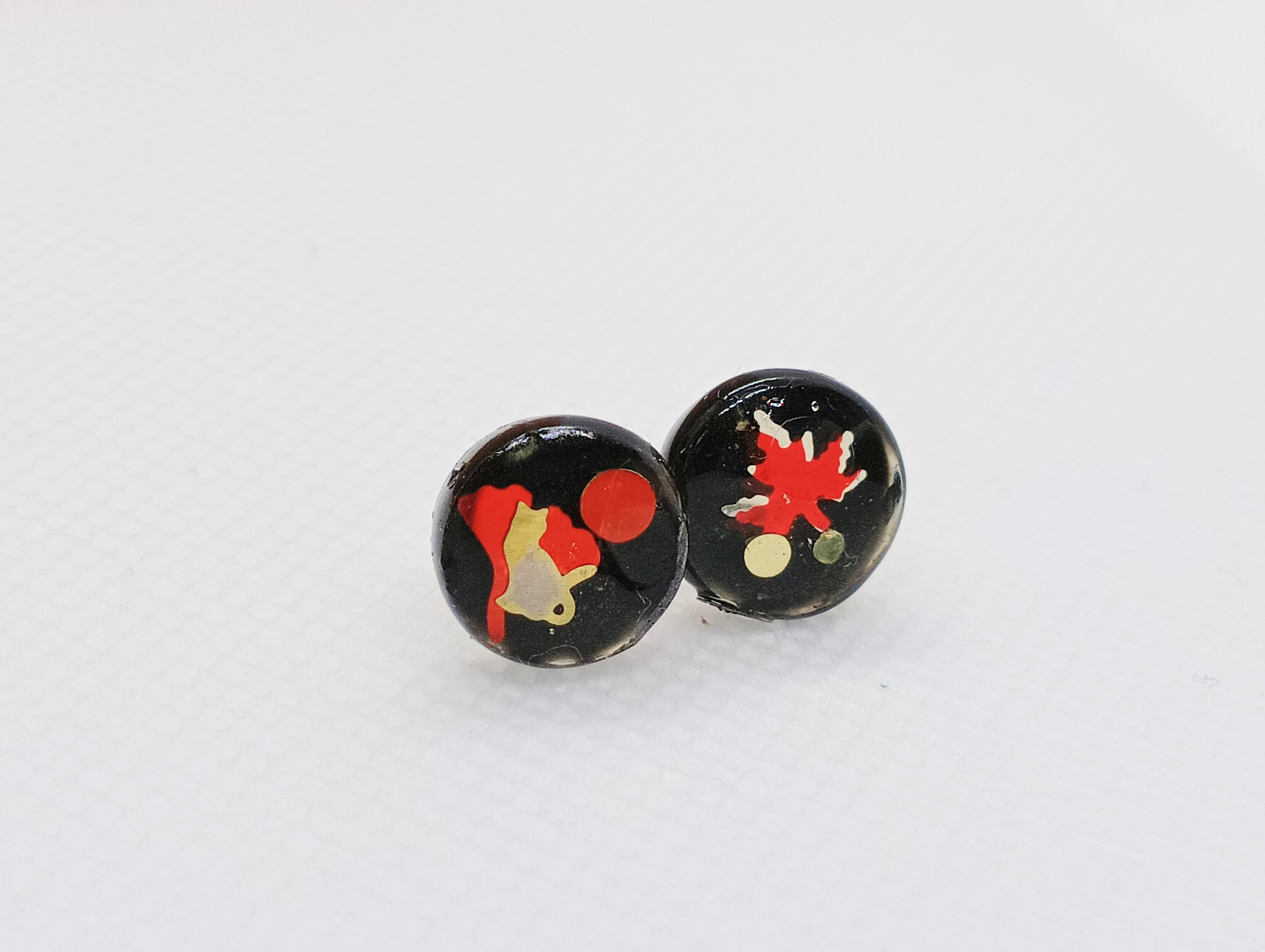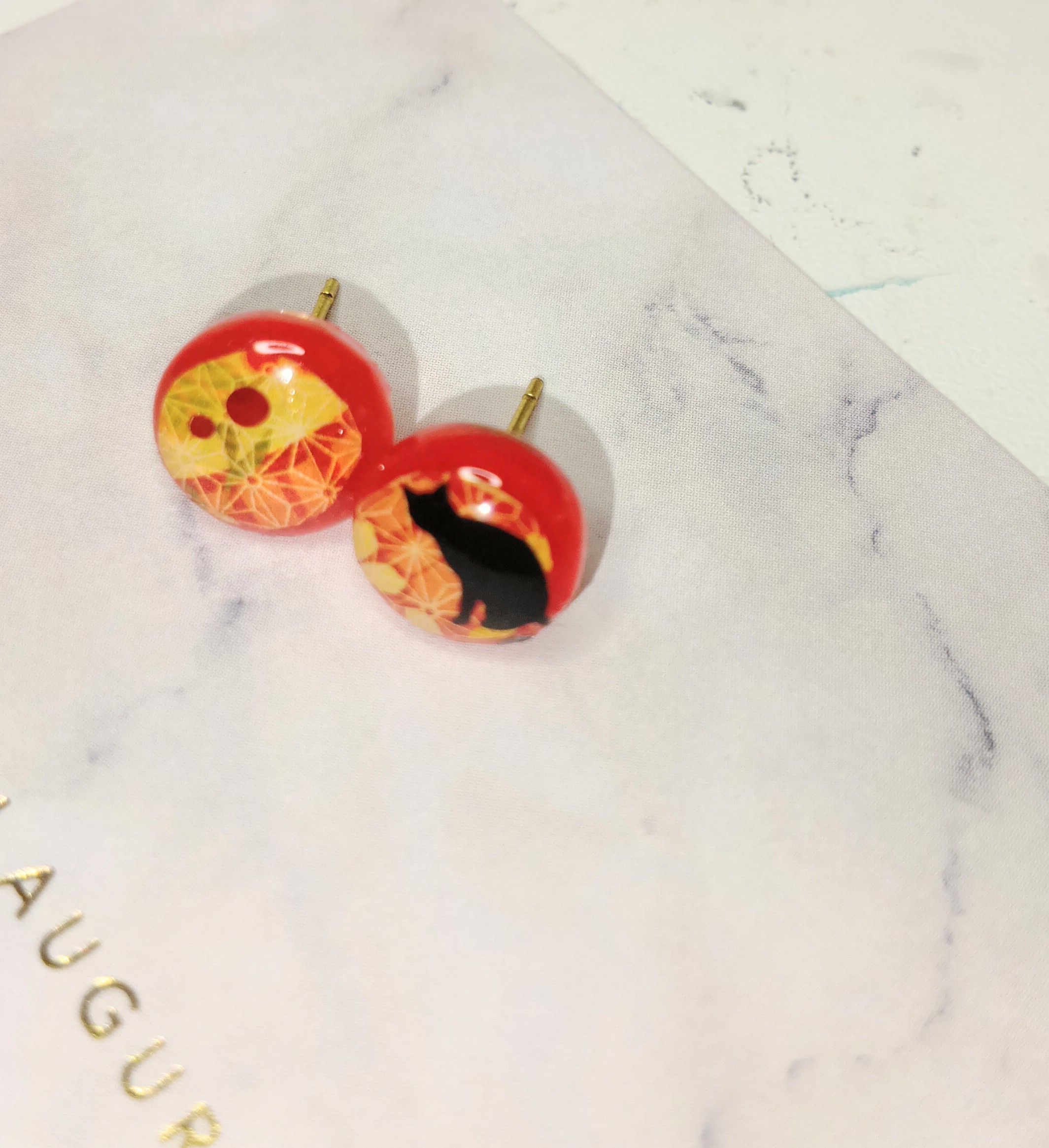 黒猫と和柄のピアス・イヤリング