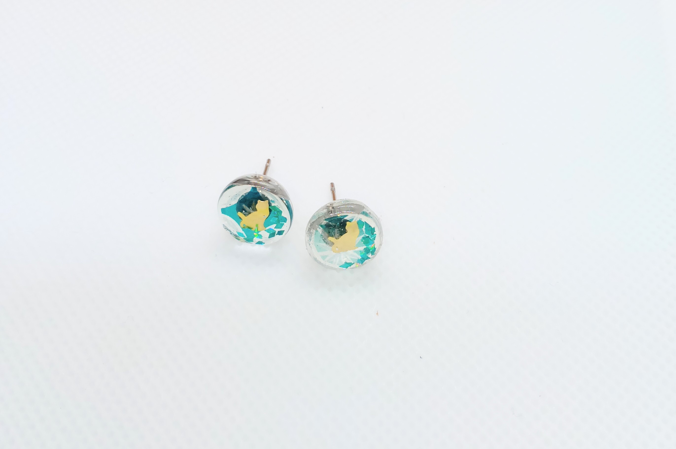 春をイメージして。(青) 小さな猫のイヤリングorピヤス